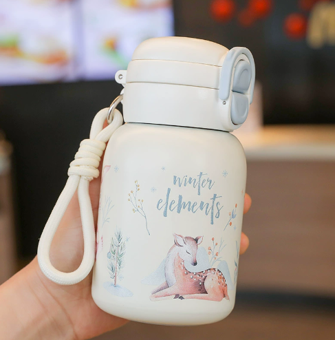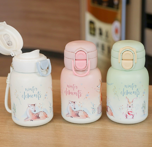 500ml Mini Children's Insulated Water Bottle - Luxe & High-End Design with Straw Lid, Outdoor Durable, Cartoon-Themed Cup