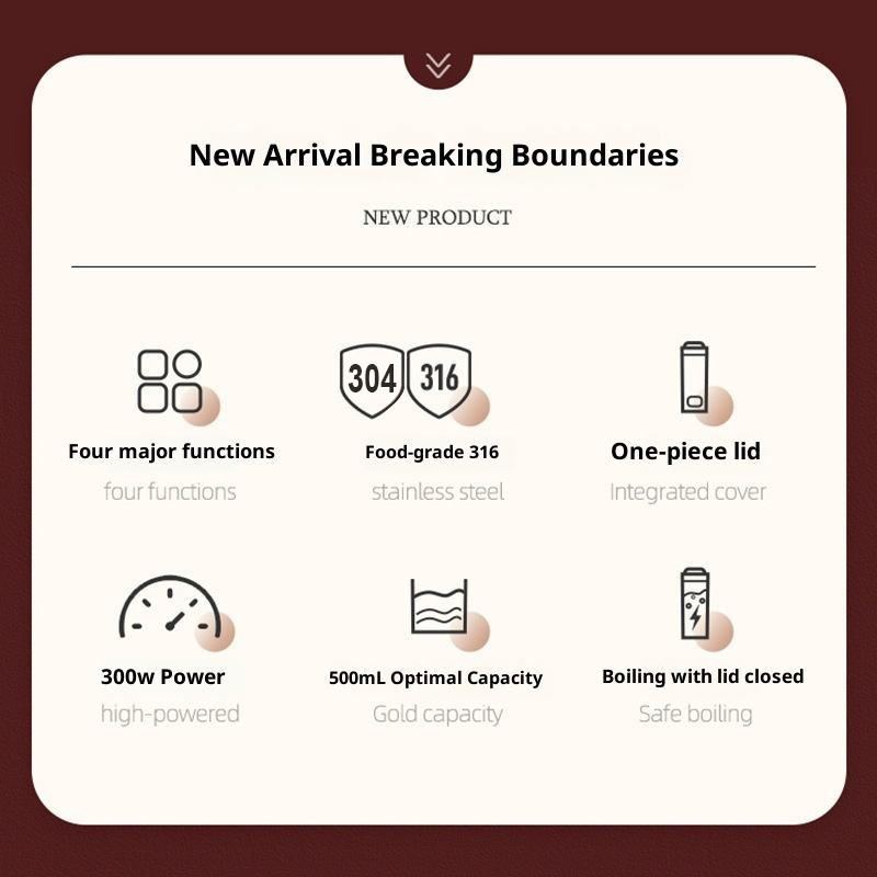 Bollitore Elettrico Portatile USB da 500ml per Ufficio e Viaggio con Controllo Digitale della Temperatura in Acciaio Inox per Uso Domestico