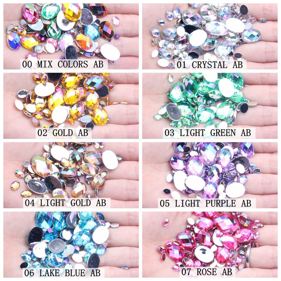 500 pezzi 6x8mm AB Color acrilico cristalli alla rinfusa di forma ovale di terra sfaccettature per unghie