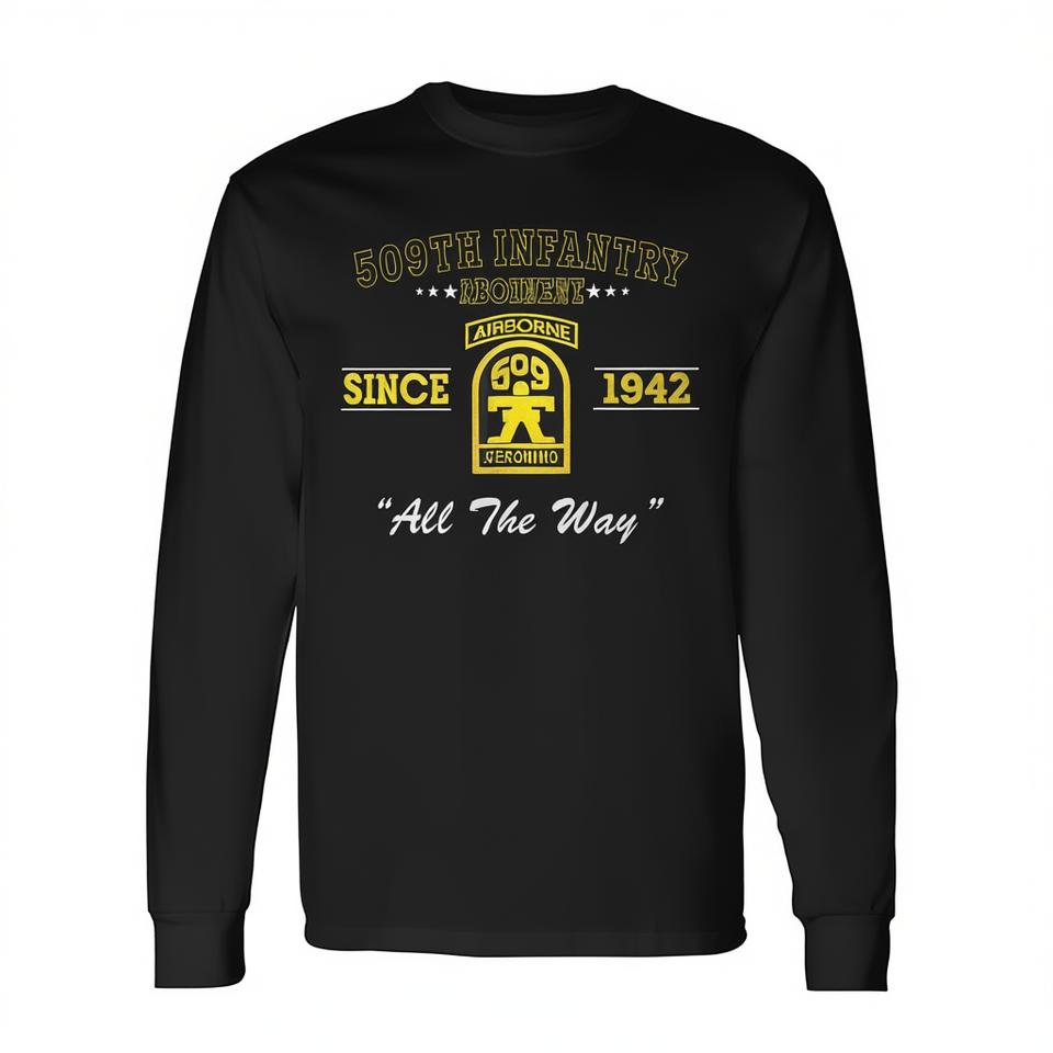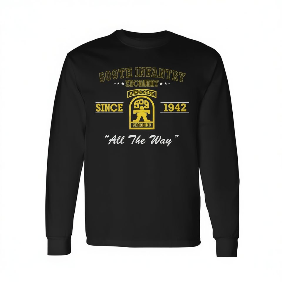 T-shirt a maniche lunghe del 509° Reggimento Fanteria Airborne dal 1942, unisex, girocollo, per adulti