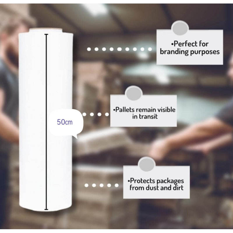 Pellicola Estensibile Manuale LLDPE Bianca 50CM 20MIC 2KG 80GA per Imballaggio Morbido Personalizzato per Trasporto