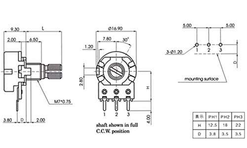 Potenziometro 50K resistenze variabili 3 terminali Audio 50K potenziometro rotativo lunghezza 15Mm Wh148 potenziometro rotativo
