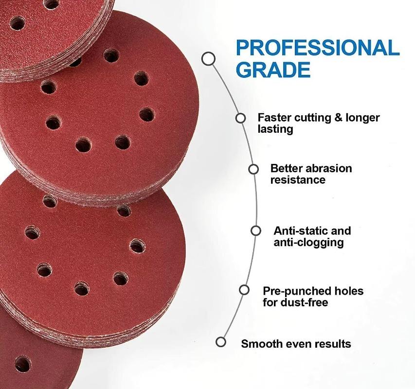 50 Pezzi Dischi Abrasivi da 5 Pollici con 8 Fori, Grana 150 600 1000, Carta Abrasiva per Levigatrice Orbitale