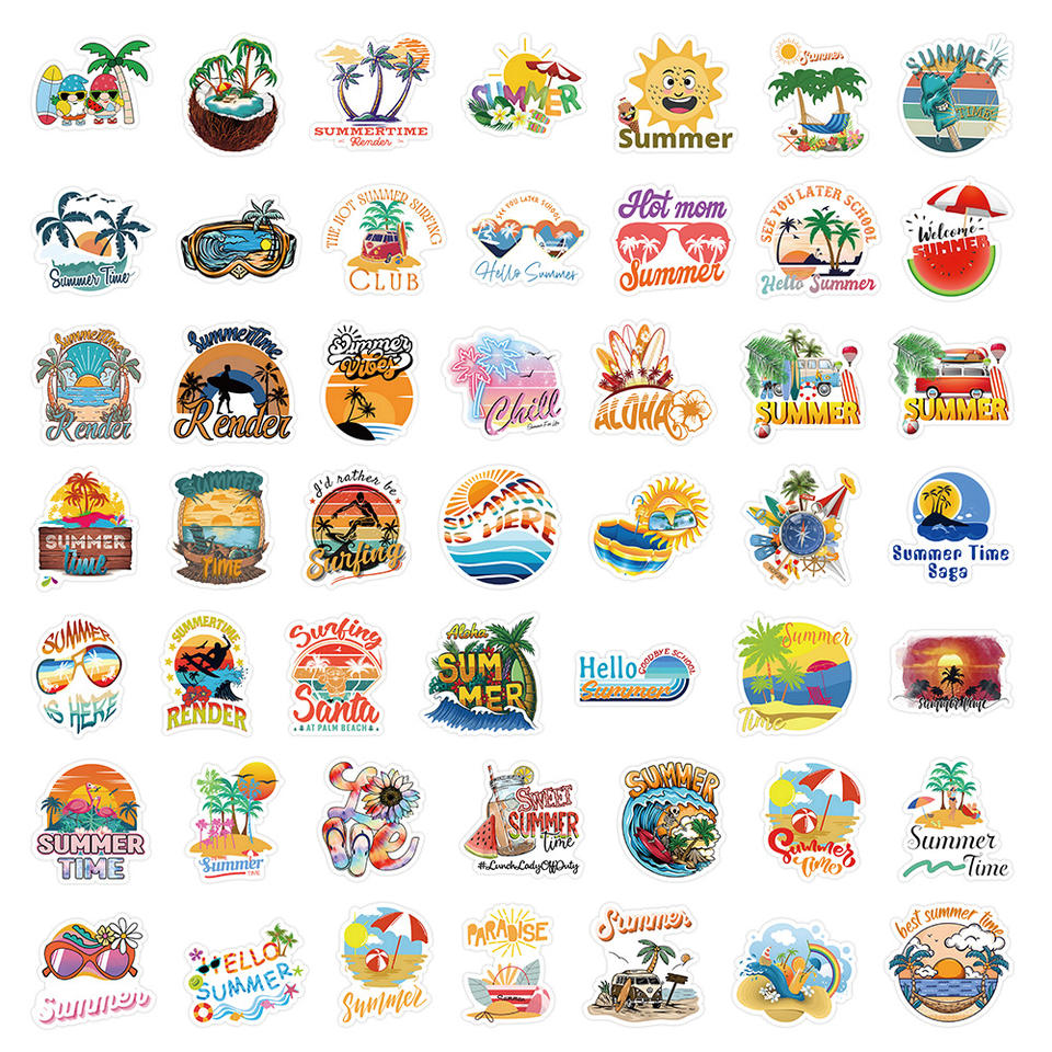 50PCS Aesthetic hawaii beach trendy summer time die cut sticker