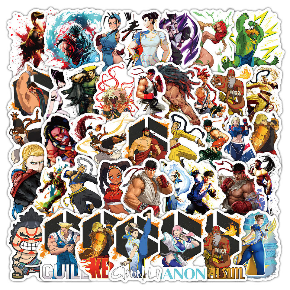 50 pezzi creativi Street Fighter Graffiti e personaggi dei giochi dei cartoni animati adesivi per casco fatto da te per la decorazione della casa personalizzata