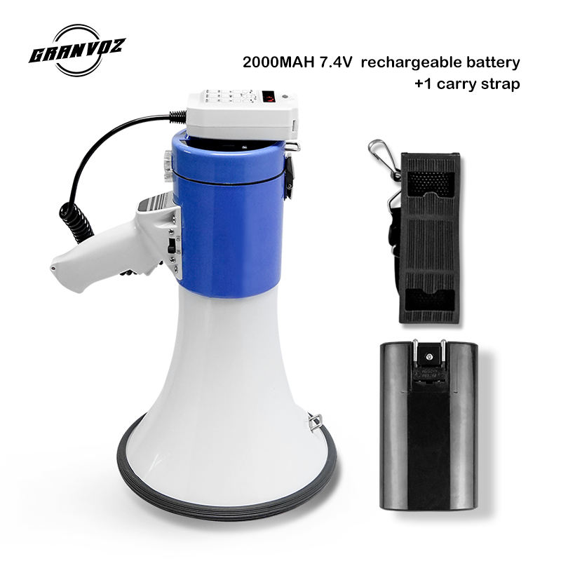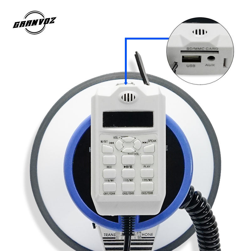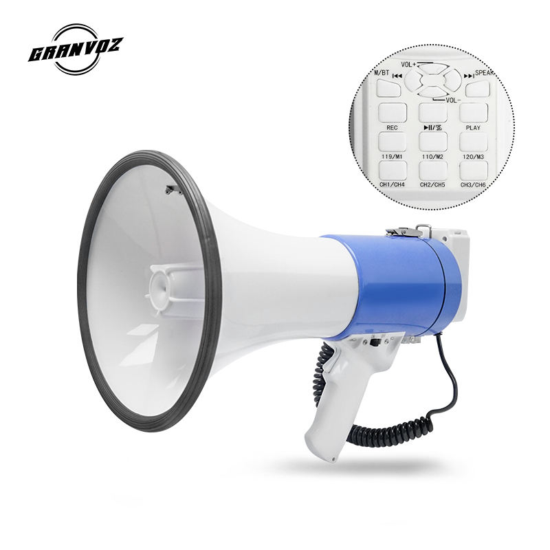 Megafono 50W con BT/USB/AUX/SD/registrazione, sirena 110/119/120, cambia voce 6, batteria ricaricabile, compatibile con DC12V e dimensioni C