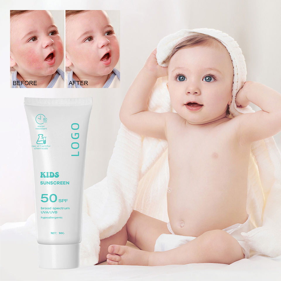 Crema Solare Minerale Coreana SPF 50+ UVA/UVB per Bambini, 50g, Marchio Privato, Impermeabile, per Pelle Sensibile