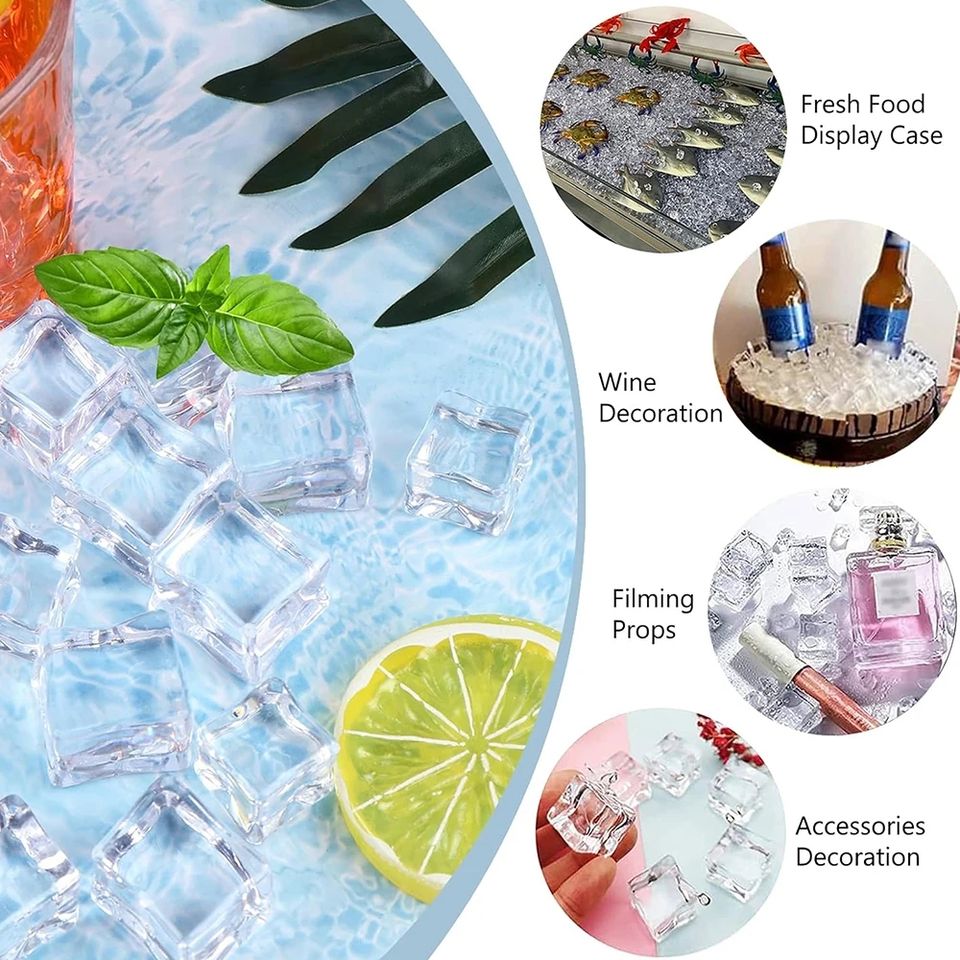 50 Pezzi Cubi di Vetro Quadrati 20mm, Cristalli Artificiali in Acrilico, Cubetti di Ghiaccio Finti per Fotografia e Sfondi