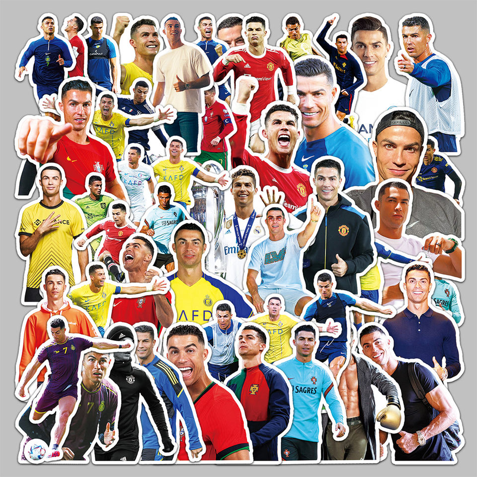 50 Pezzi Adesivi Personalizzati a Tema Sportivo con Cristiano Ronaldo (B), Decalcomanie Decorative per Calcio