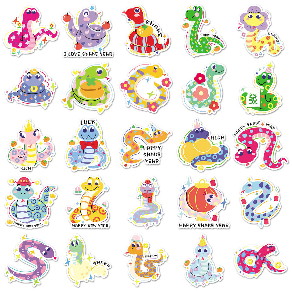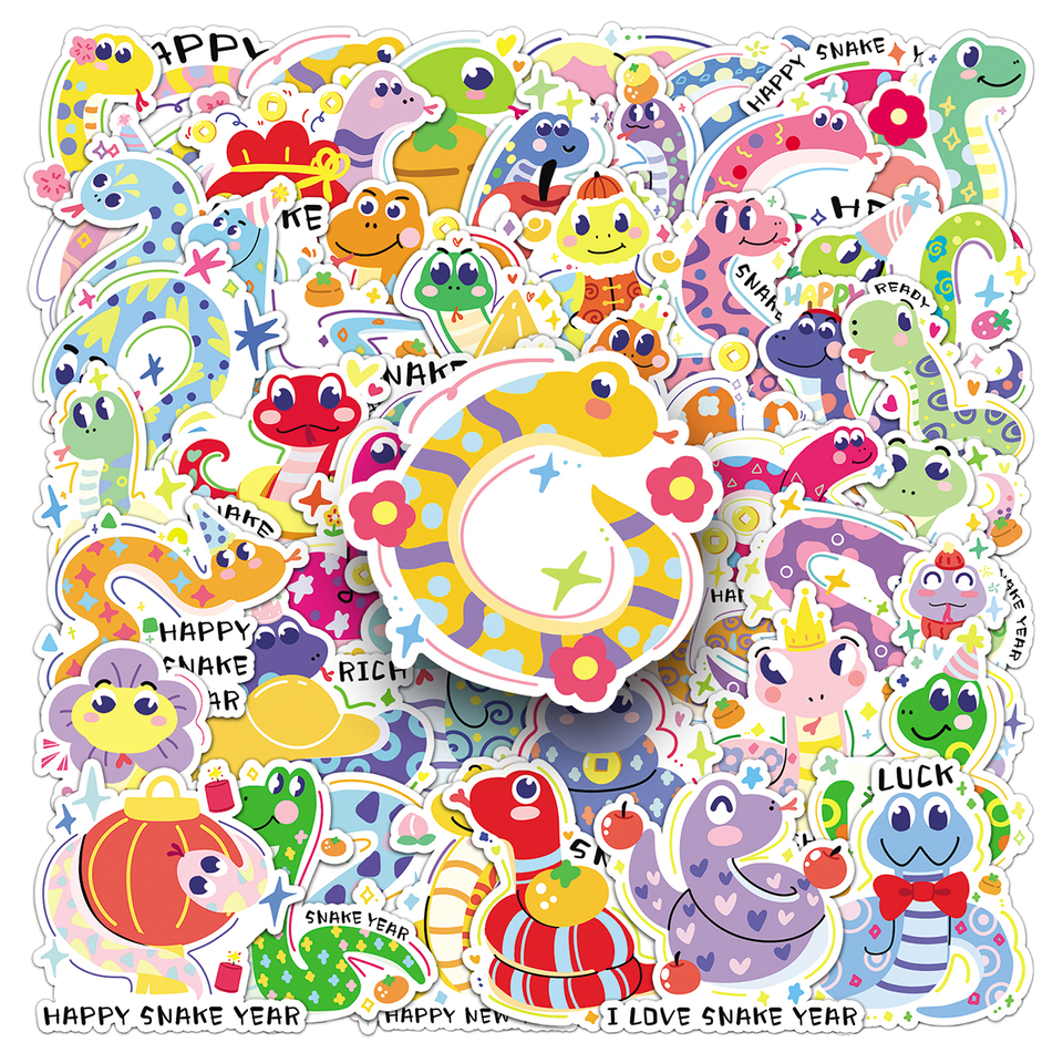 50 Pezzi Decorazioni Adesive in PVC Ecologiche di Alta Qualità con Stampe di Animali Cartoon per Capodanno