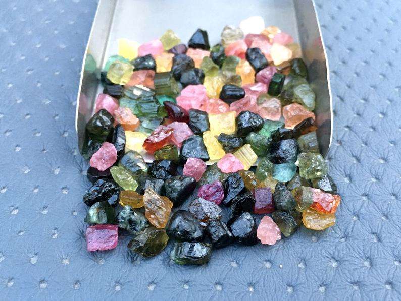 50pcs Natural Multi Tourmaline Gemstone Tiny Rough Stone 6mm Height Handmade Jewelry Making Unconditional Love