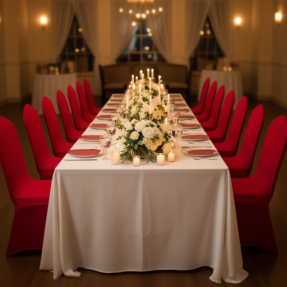 Coprisedie elasticizzati in poliestere rosso 20.08x17.72x37.4 pollici per matrimoni, banchetti, hotel