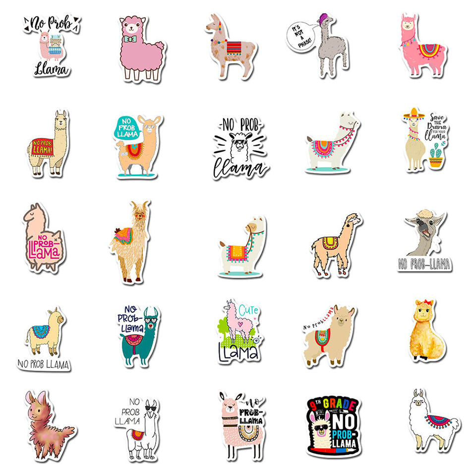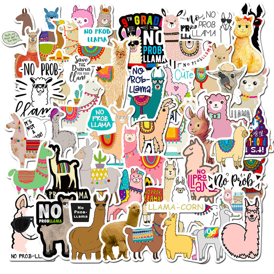 50 Pezzi Adesivi in Vinile Impermeabili con Pecore, Llamas, Cavalli e Graffiti, per Valigie, Laptop, Caschi, Adesivi Carini
