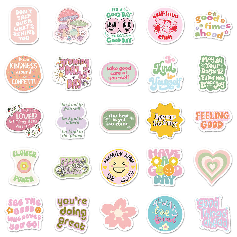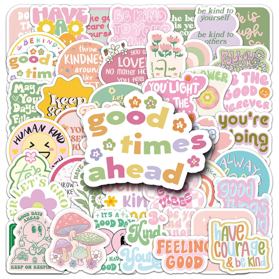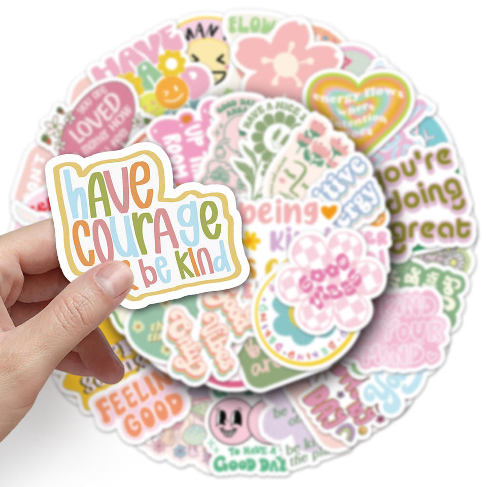 50 pz adesivo di ispirazione in PVC rosa caldo essere gentili citazioni di motivazione in stile cartone animato gentilezza e calore incoraggiato