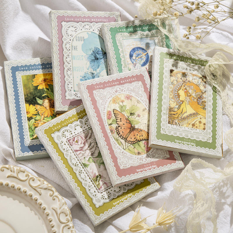 50pieces/pack Material Paper This Lace Sequel Series Lace Collage Journal Decoration Base Mamo Pad 6 Models