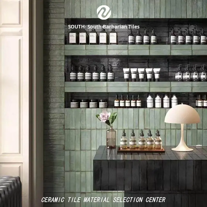 Piastrelle Vintage in Ceramica Blu-Verde Effetto Invecchiato 50x200 Fatte a Mano per Interni Cucina Ristorante Parete di Sfondo Spessore 8MM Gradiente