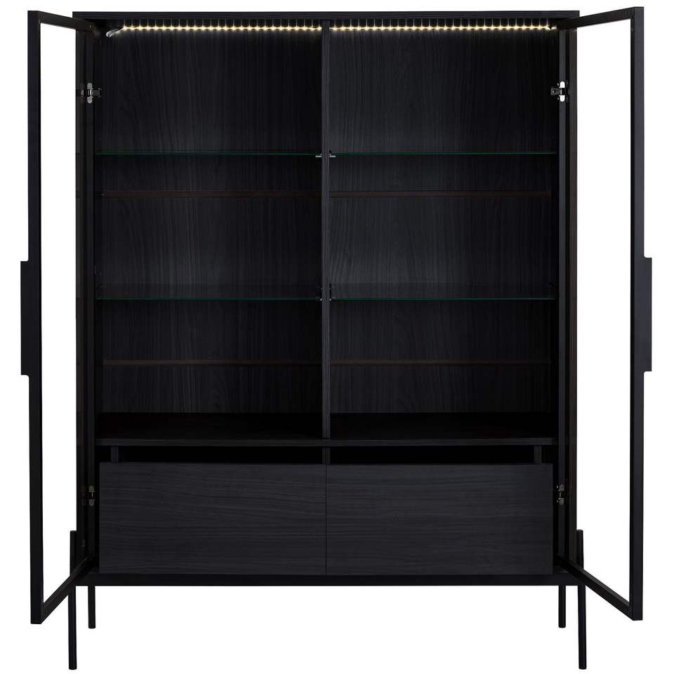 51.2'' Tall LED Curio Cabinet Modern Minimalist Style Lighted Display Tempered Glass Door Metal Legs Black for Living Room