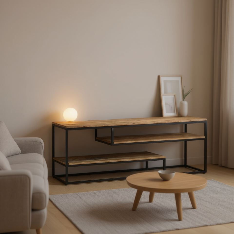 Mobile TV in Legno di Mango Marrone 51,2 Pollici, Design Industriale Moderno, Arredamento per Soggiorno