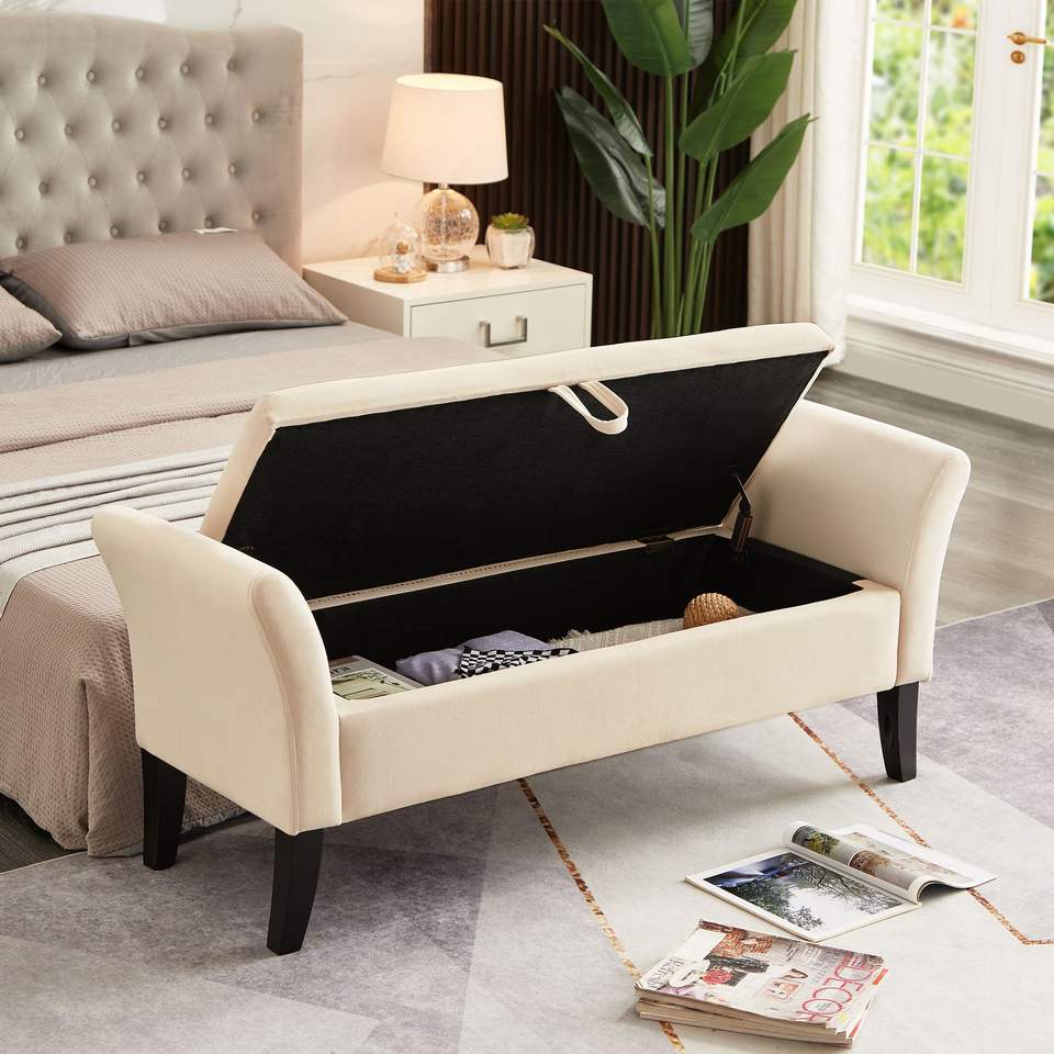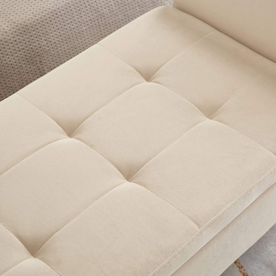 Panca letto da 51,5 pollici con contenitore in velluto beige, mobile per camera da letto