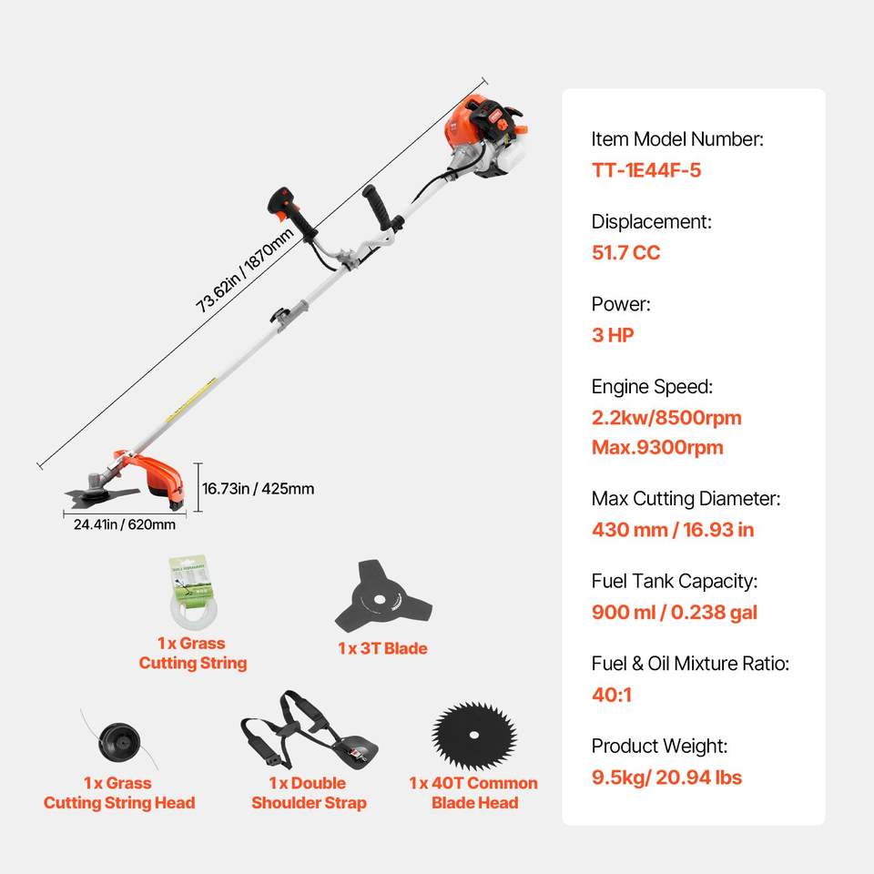 51.7CC 2-Stroke Gas Powered 16.9\" Cordless Grass Trimmer Multi-Functional 51.7CC Lawn Edger String Trimmer Weed Wacker Should