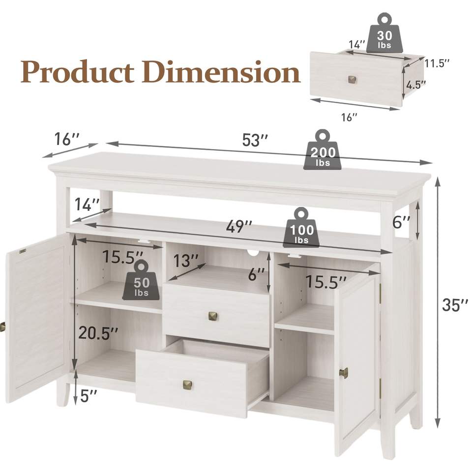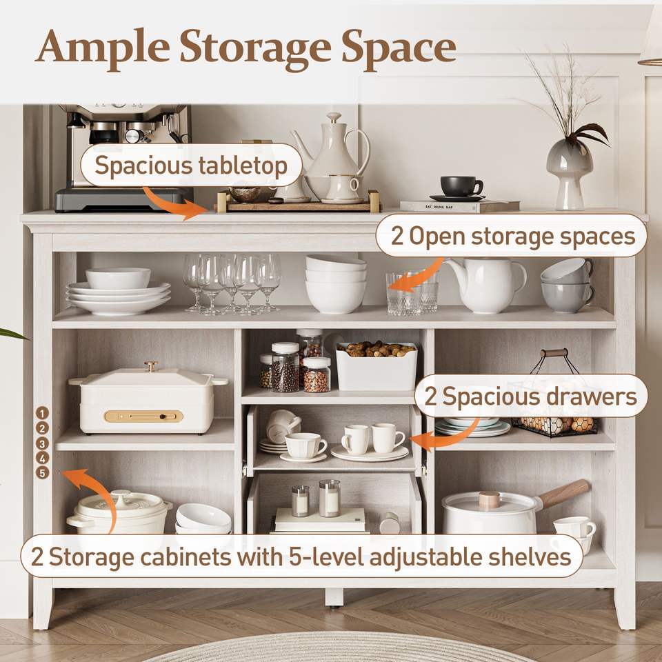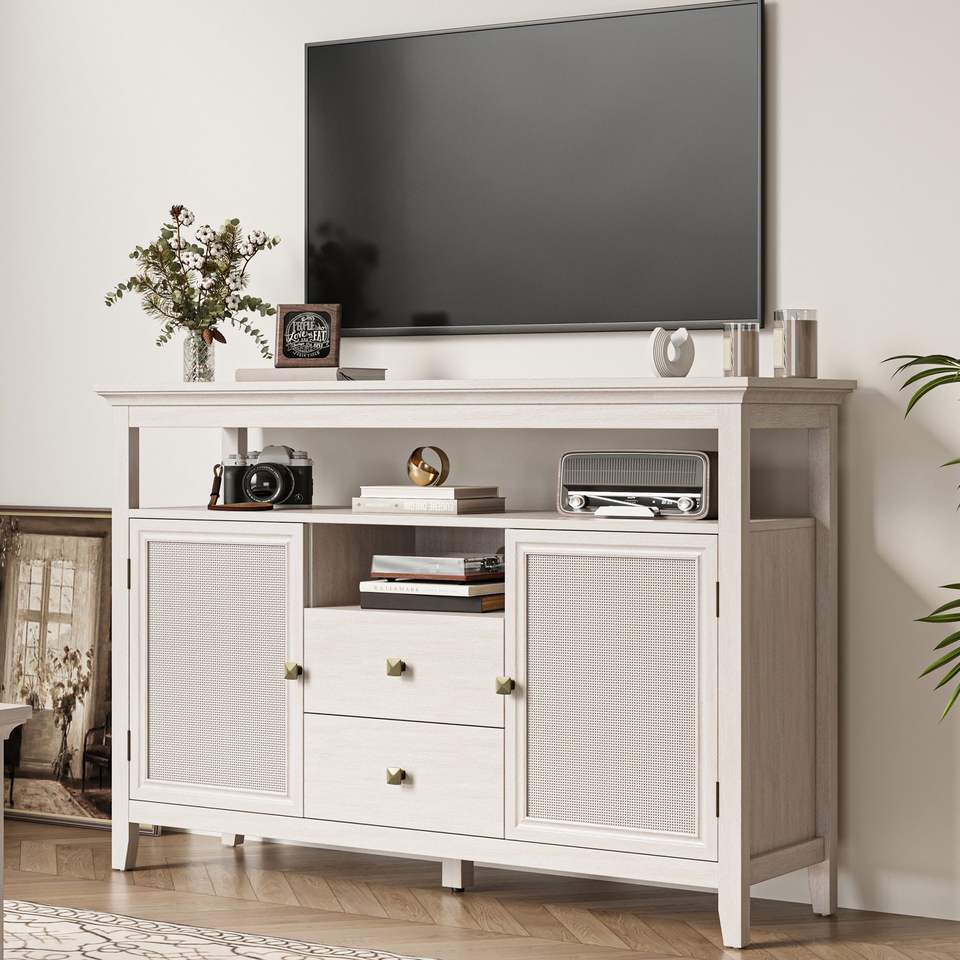 Credenza in Rattan Stile Boho Farmhouse da 134 cm con Ripiani Regolabili, Mobile Contenitore per Cucina e Soggiorno, Buffet Decorativo