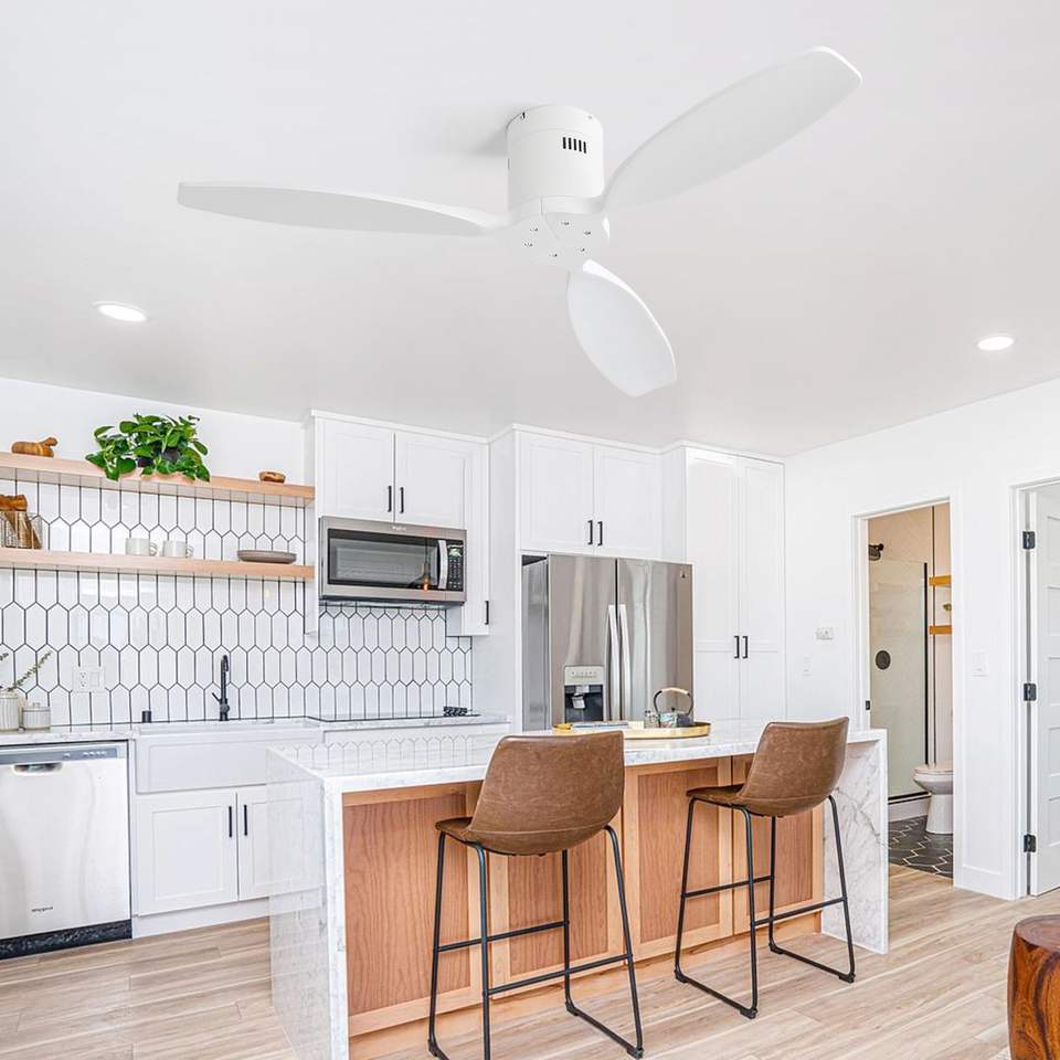 Ventilatore da Soffitto da 52 Pollici con Telecomando, Motore DC Reversibile, 3 Pale in Legno Massello, Senza Luce, Struttura in Legno