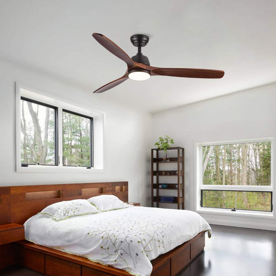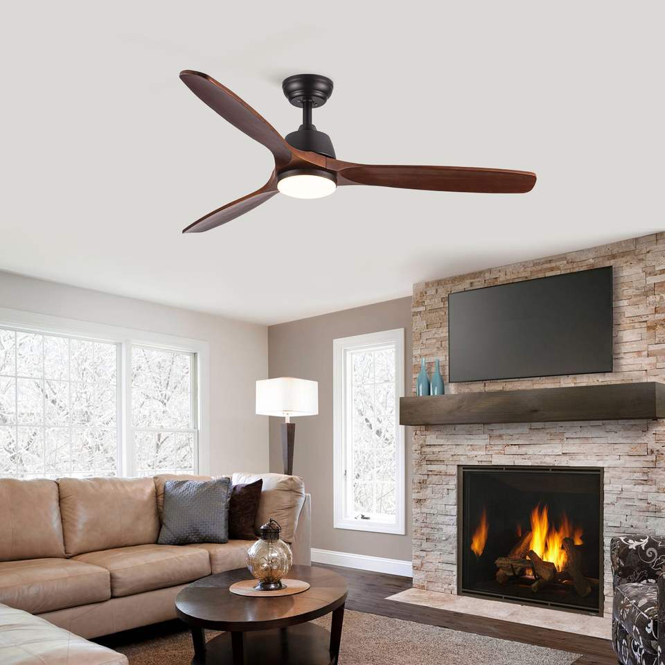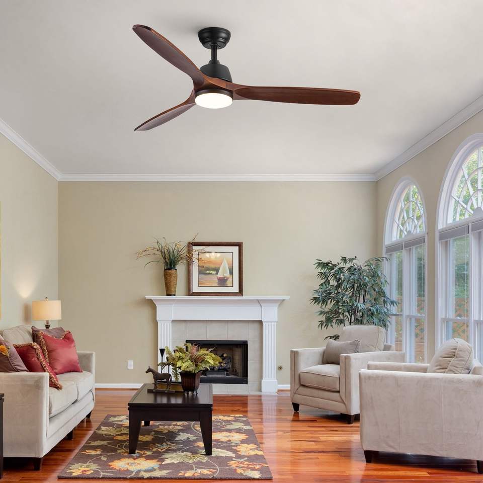Ventilatore da Soffitto Smart Integrato con LED da 52 Pollici, Stile Rustico, con Telecomando per Uso Interno/Esterno, Colore Nero