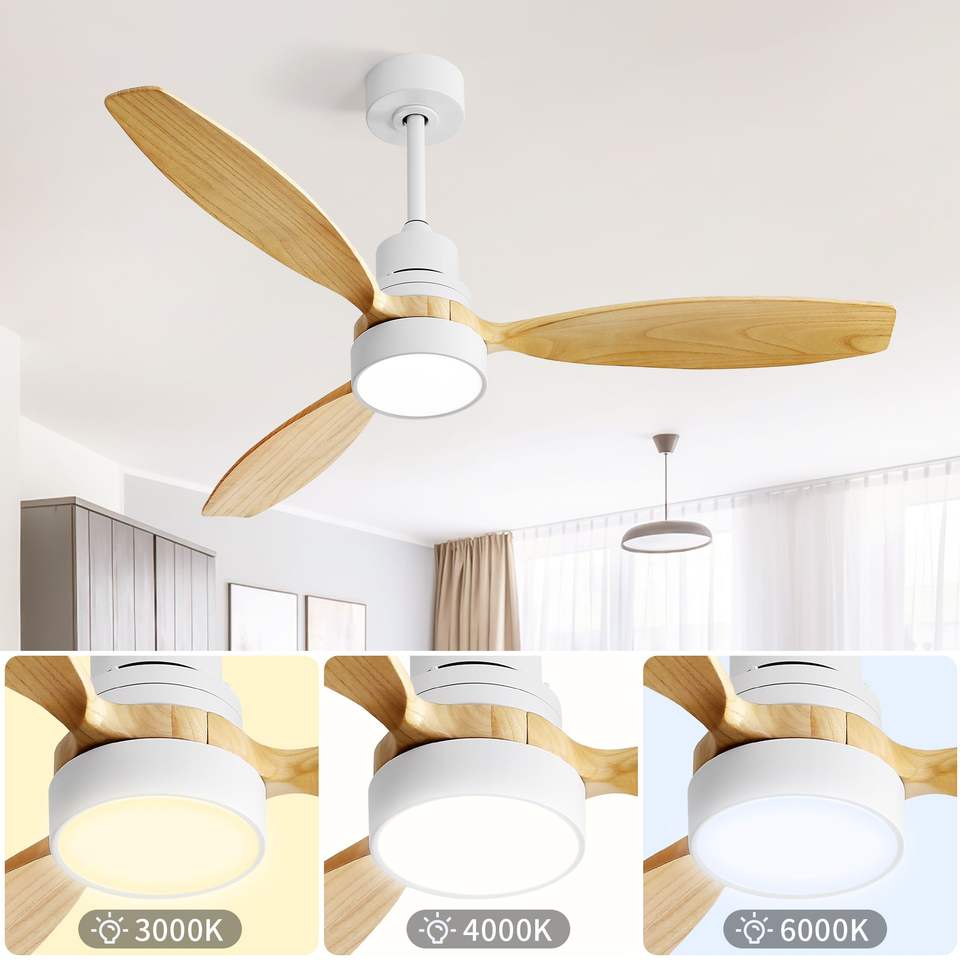 Ventilatore da soffitto LED da 52 pollici con motore DC reversibile a risparmio energetico, 6 velocità, telecomando e luce per camera da letto
