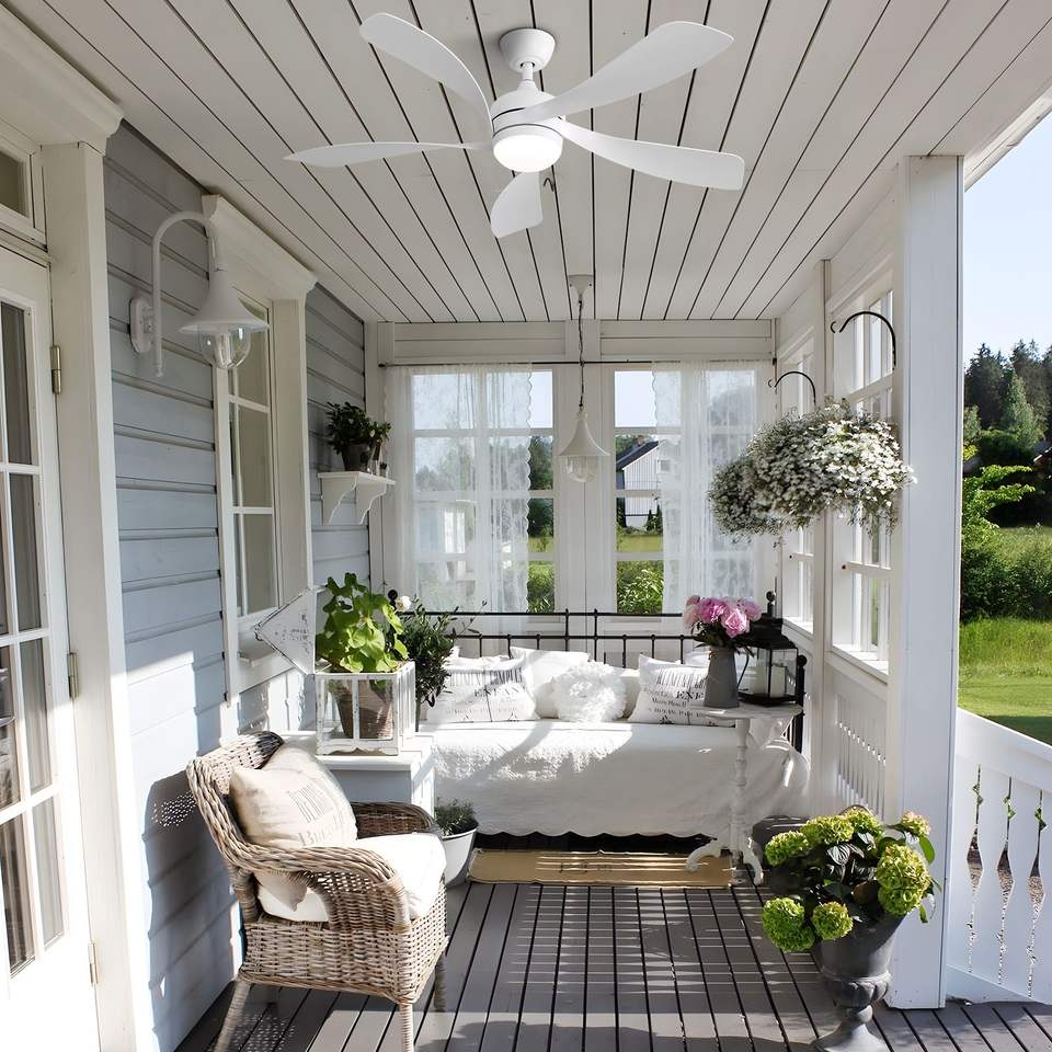 Ventilatore da soffitto moderno reversibile da 52 pollici con motore DC, 5 pale in ABS e luci LED con telecomando, bianco, per camera da letto