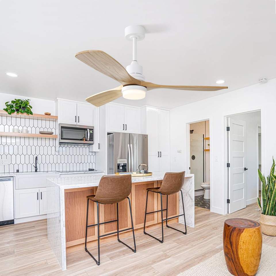Ventilatore da soffitto reversibile da 52 pollici con motore DC, luce LED dimmerabile e telecomando a 6 velocità, 3 pale in legno per camere da letto