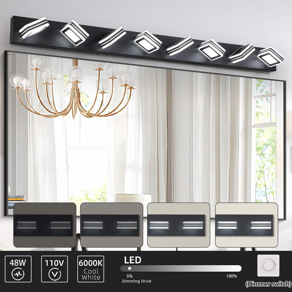 52\" Sleek Modern LED Vanity Light Energy Efficient 8 Light Wall Fixture Iron Acrylic Dimmable for Bathroom Vanities