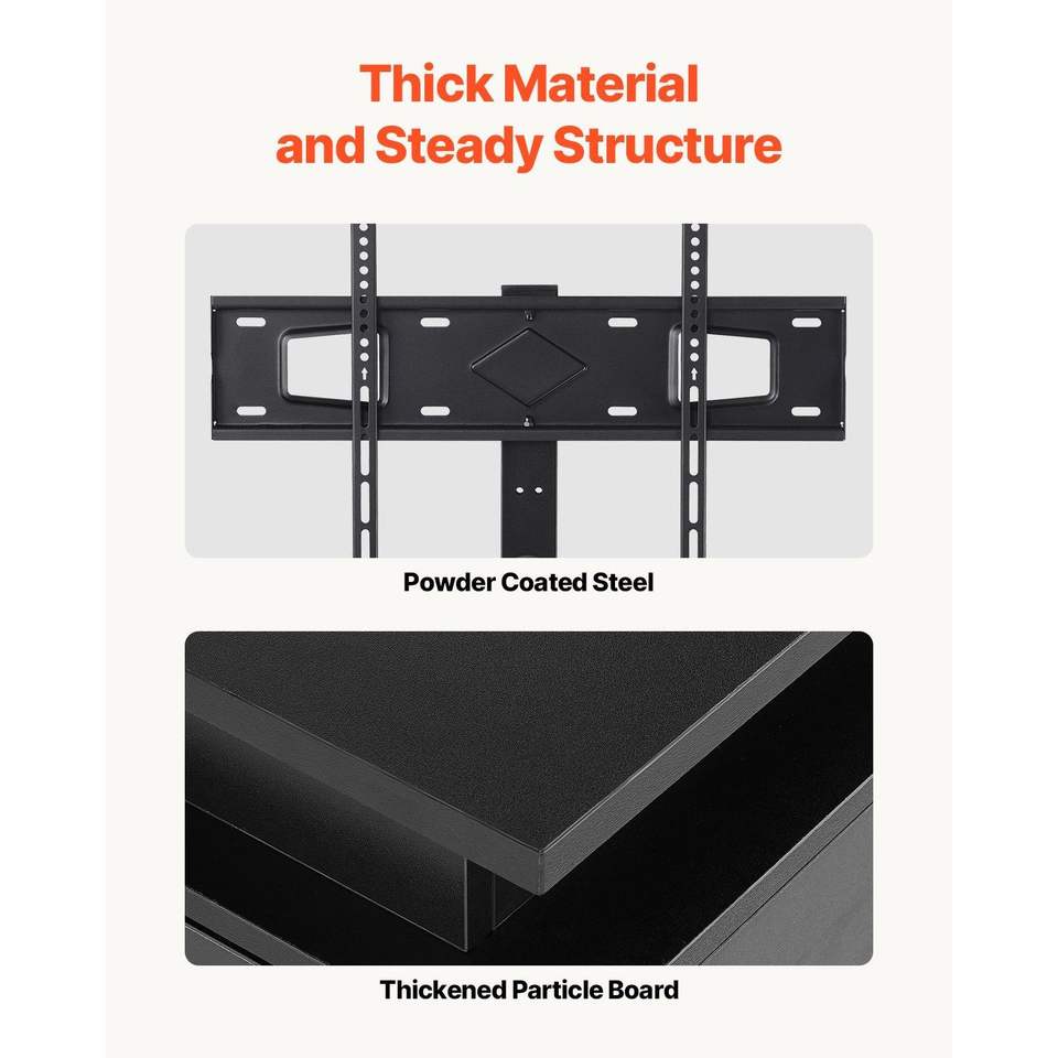 Mobile TV da 52 pollici con supporto per TV fino a 75 pollici, centro intrattenimento con presa di corrente, luci LED e altezza regolabile