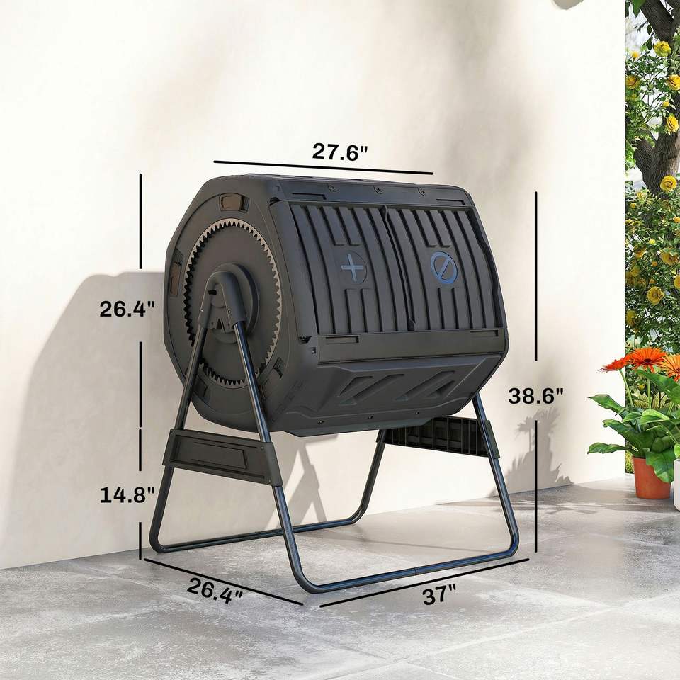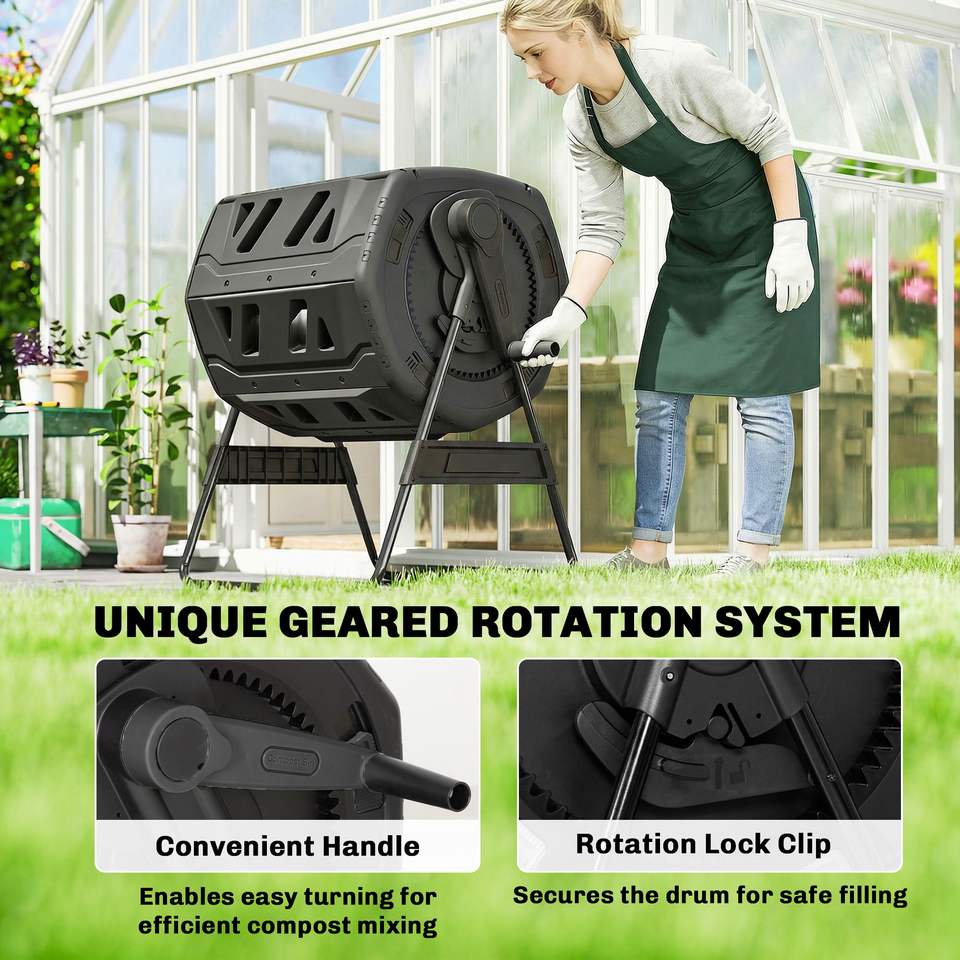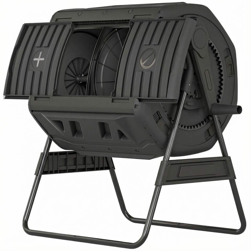 Compostiera da Esterno a Doppia Camera da 53 Galloni, Aeratore per Compost Senza BPA con Ventole Regolabili, Contenitore per Compost Nero