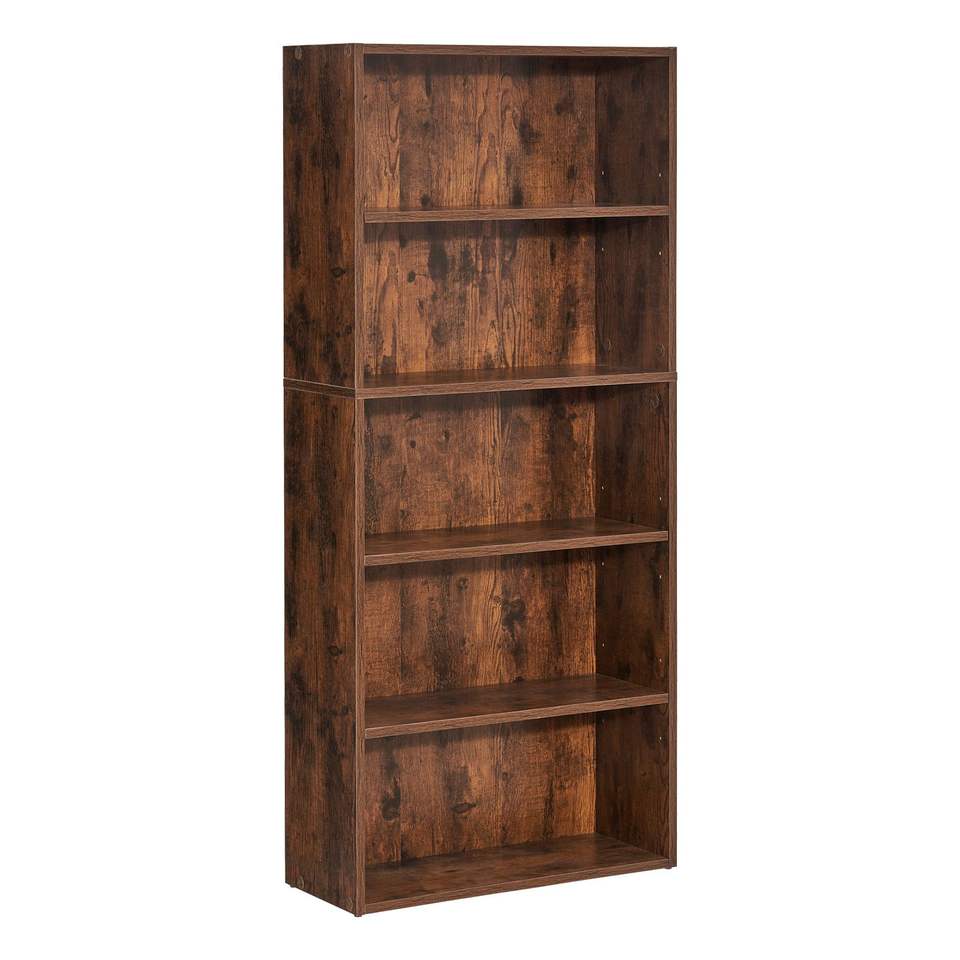 Libreria Aperta in Legno a 5 Ripiani, Scaffale Stretto Regolabile in Altezza, Espositore Autoportante Alto per Libri