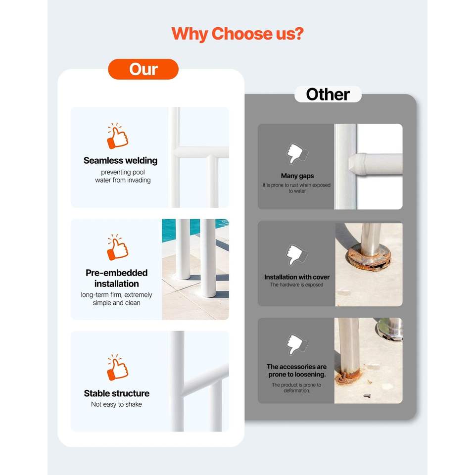 Corrimano per Piscina in Acciaio Inossidabile Resistente 54 x 32 Pollici, Capacità di Carico 220 Libbre, Saldatura Senza Giunture, per Parchi Acquatici