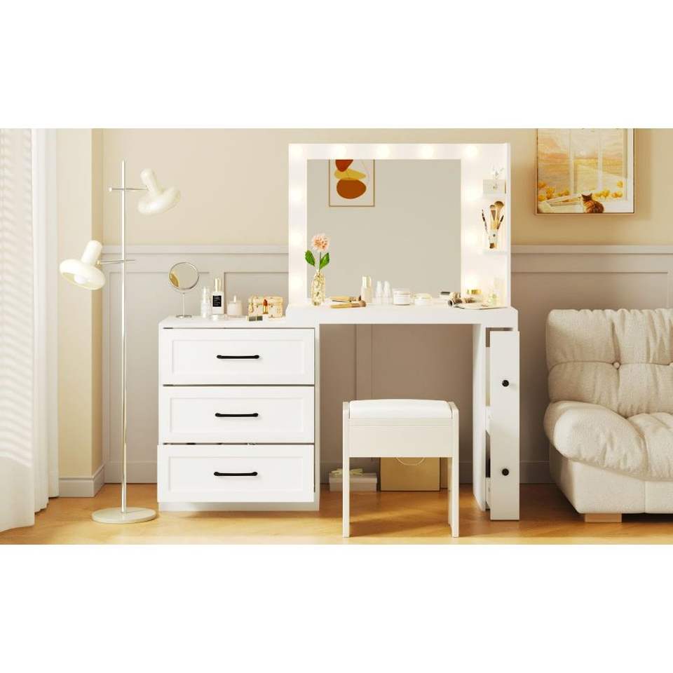 Toeletta da Trucco da 140 cm con Luci Hollywood, Mobile Laterale Regolabile e 5 Cassetti Contenitori, 2 Ripiani - Marca Mo