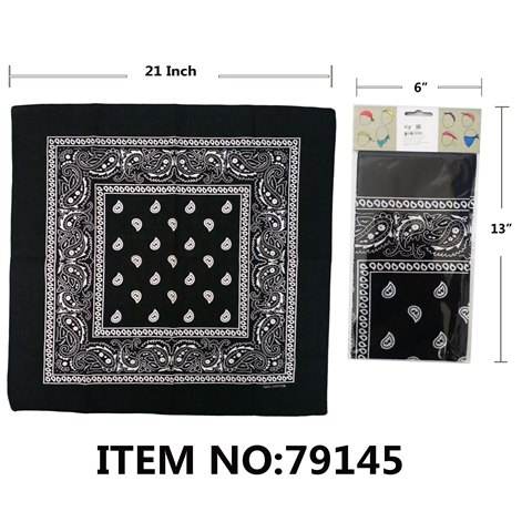 55*55CM Black 100% Cotton and Polyester Seamless Bandana 600PCS 50DZ/CS Protective Paisley Print Pattern for Outdoor Use
