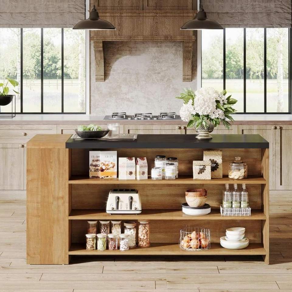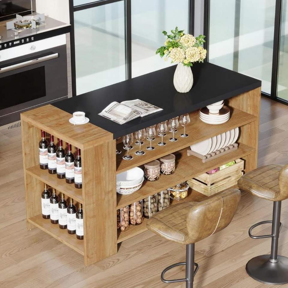 Isola e Carrello da Cucina in Legno Marrone Vintage da 55 Pollici, Design Retrò Elegante per il Tuo Spazio Cucina