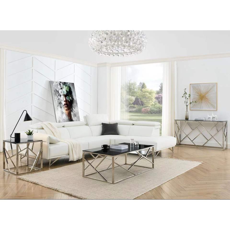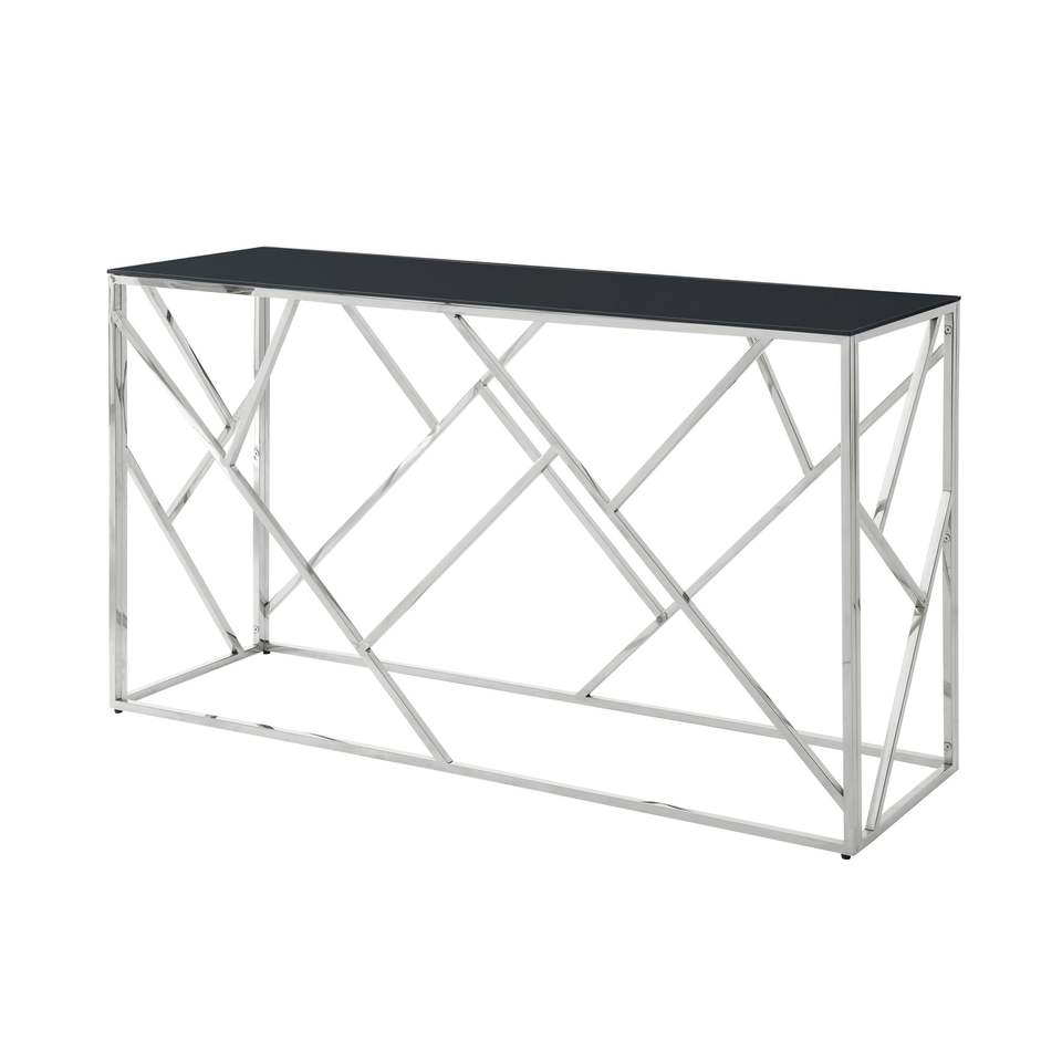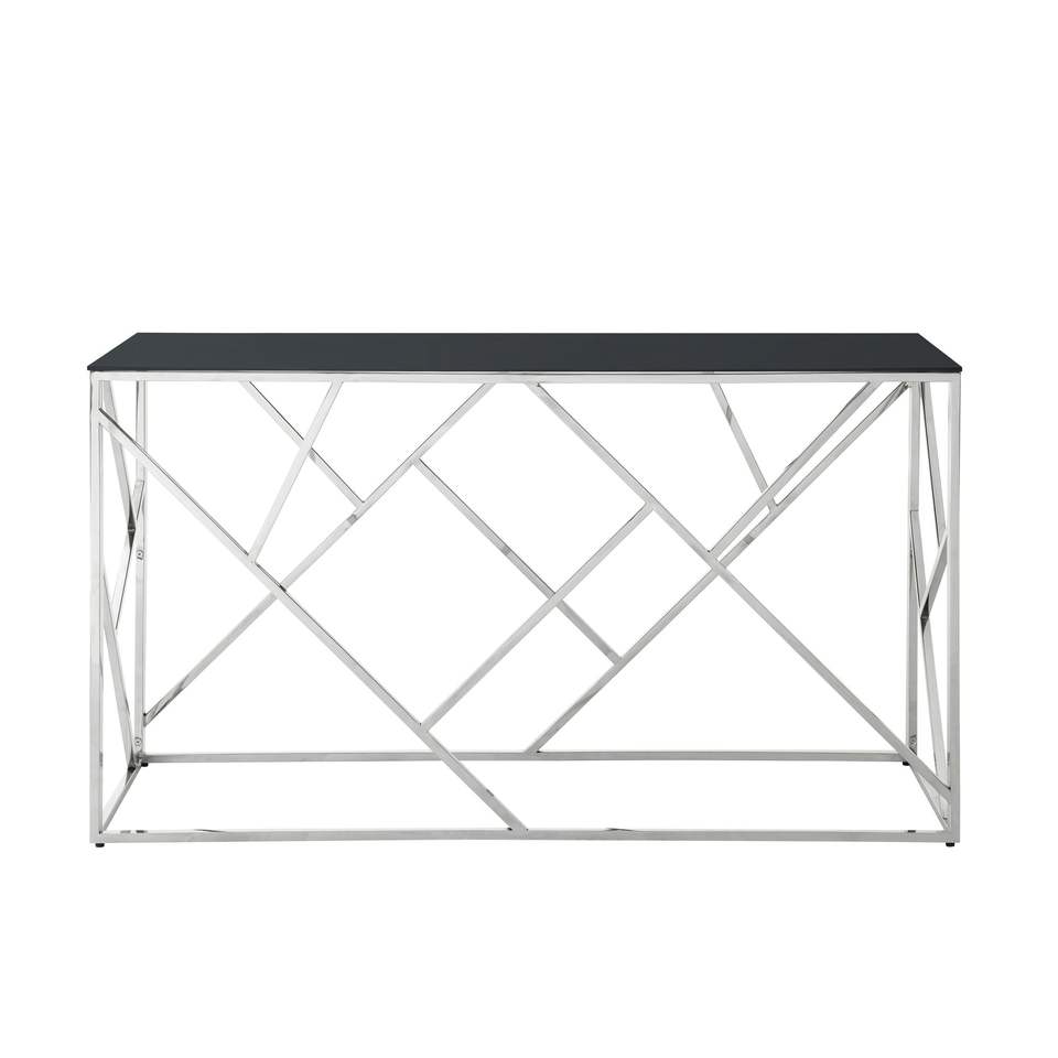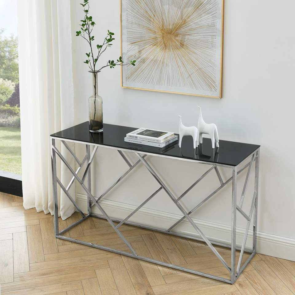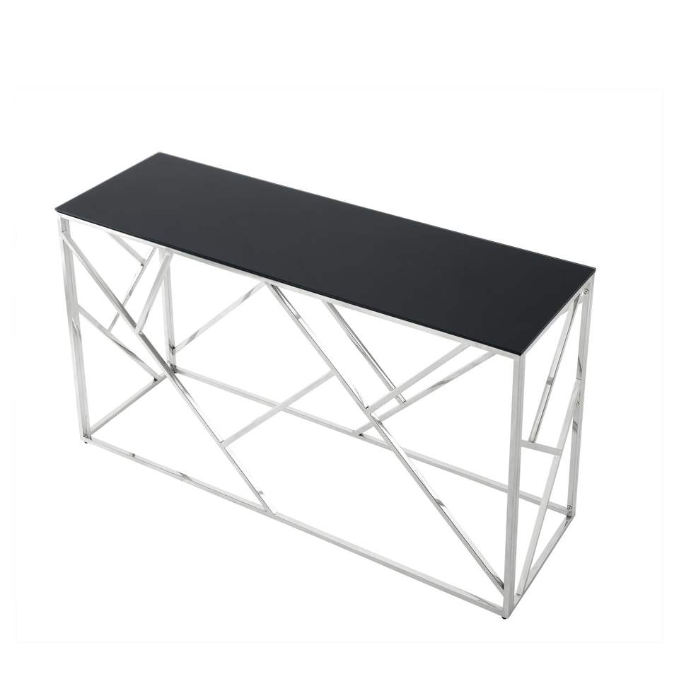 Tavolino da Salotto Moderno Dorato da 55 Pollici con Robusta Struttura in Metallo e Piano in Vetro Temperato Nero, Tavoli Console per Soggiorno e Ingresso