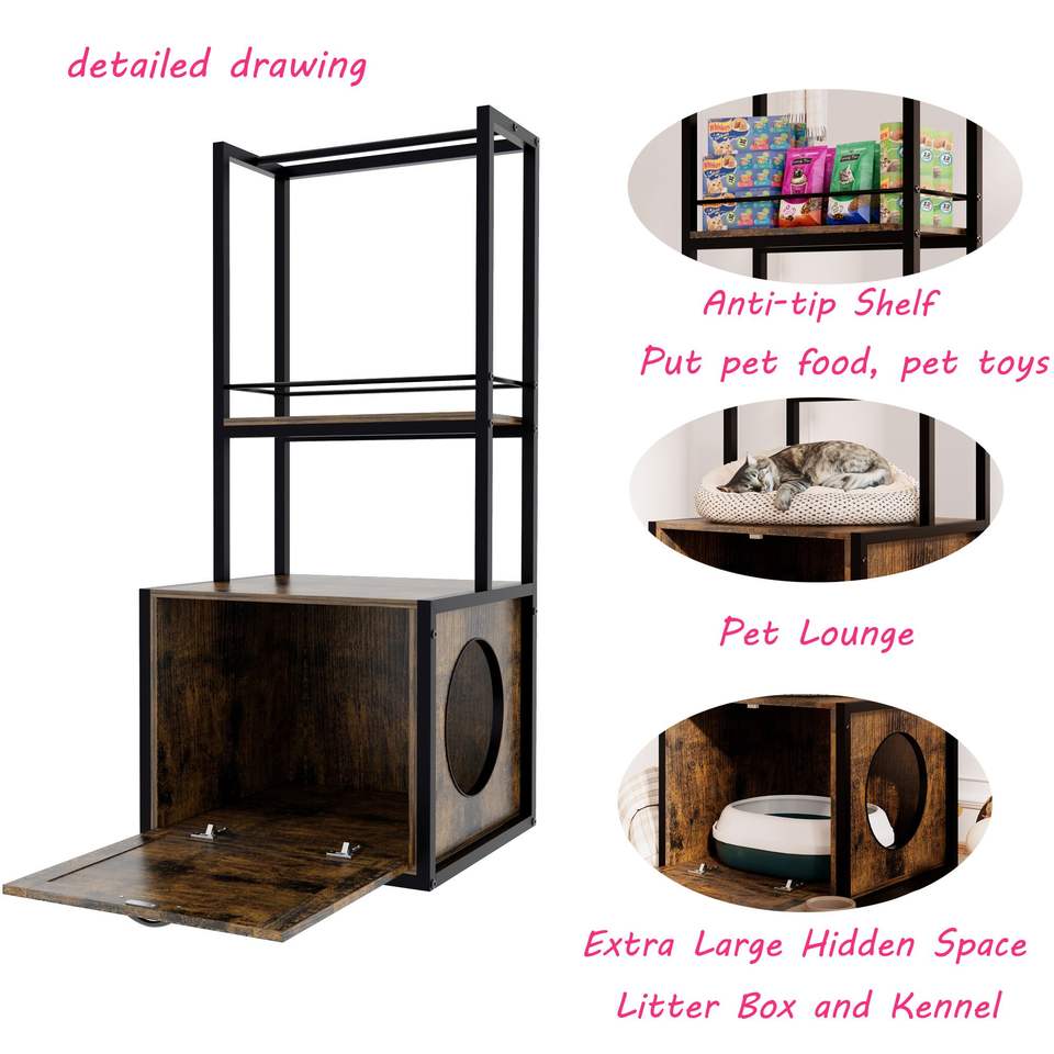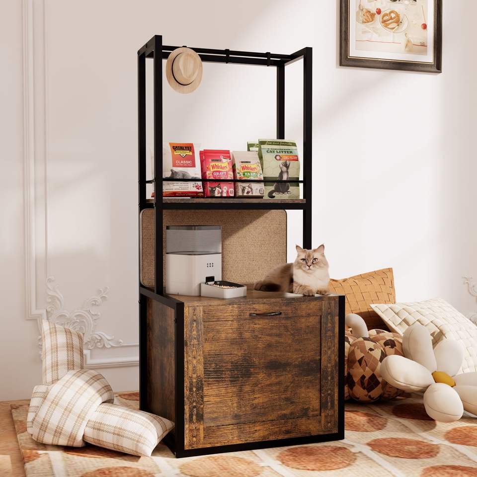 55 \ "ingresso rustico marrone reversibile 4-in-1 custodia nascosta per lettiera per gatti accessorio per ripiani per mobili