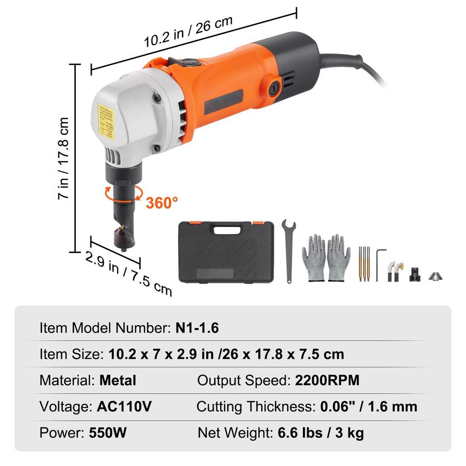 Cesoia Elettrica Potente da 550W, 2200 RPM, Alta Velocità, Rotazione a 360 Gradi, Tagliatrice per Metallo, Macchina per Taglio Dritto e Curvo a 360 Gradi