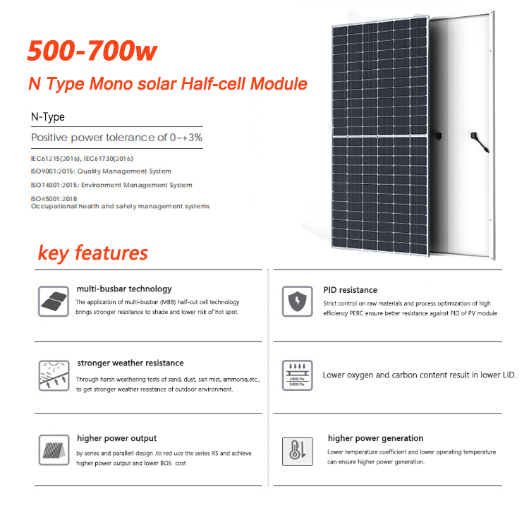 Nome del prodotto:Pannello Solare ad Alta Efficienza 400W-700W