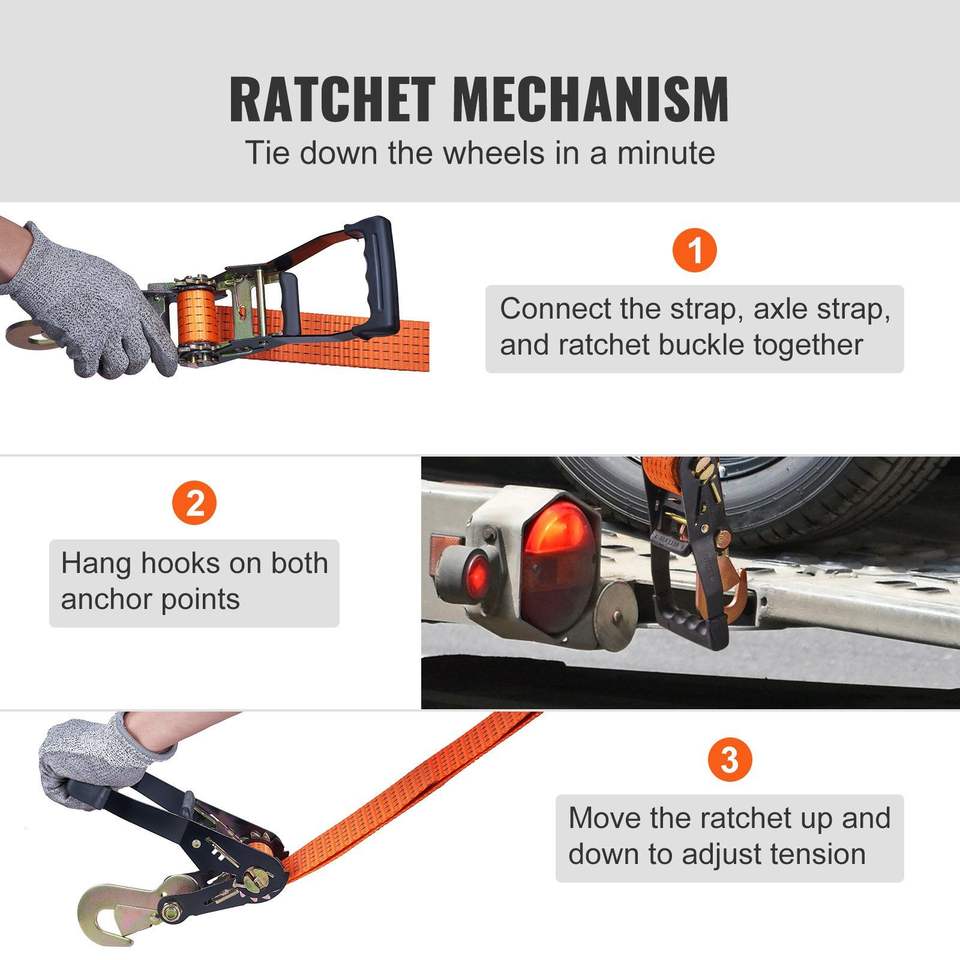 Kit di Cinghie a Cricchetto Stile Lasso 5512 LBS Carico di Lavoro 11023 LBS Resistenza alla Rottura 2" X 120" per Fissaggio Auto