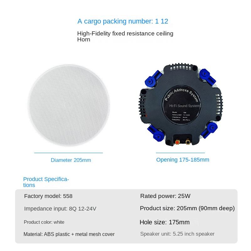 558 Coaxial Ceiling Horn with 80W Output Power Fixed Resistance Speakers for Stage Use Audio Shop Background Music