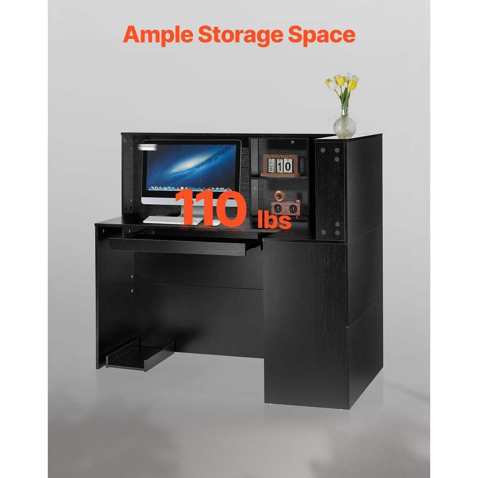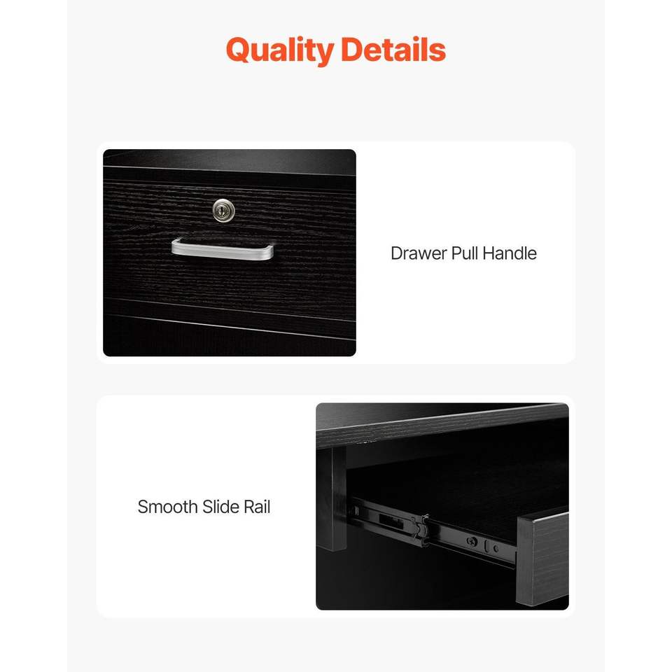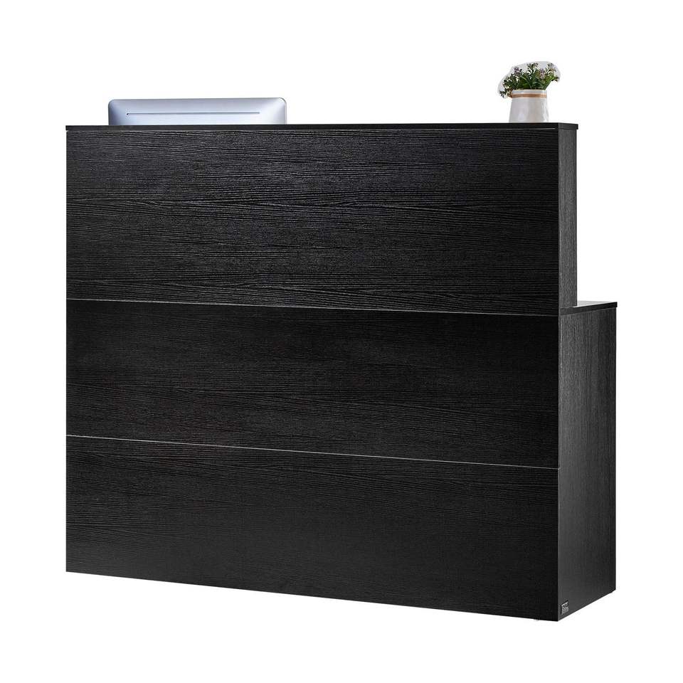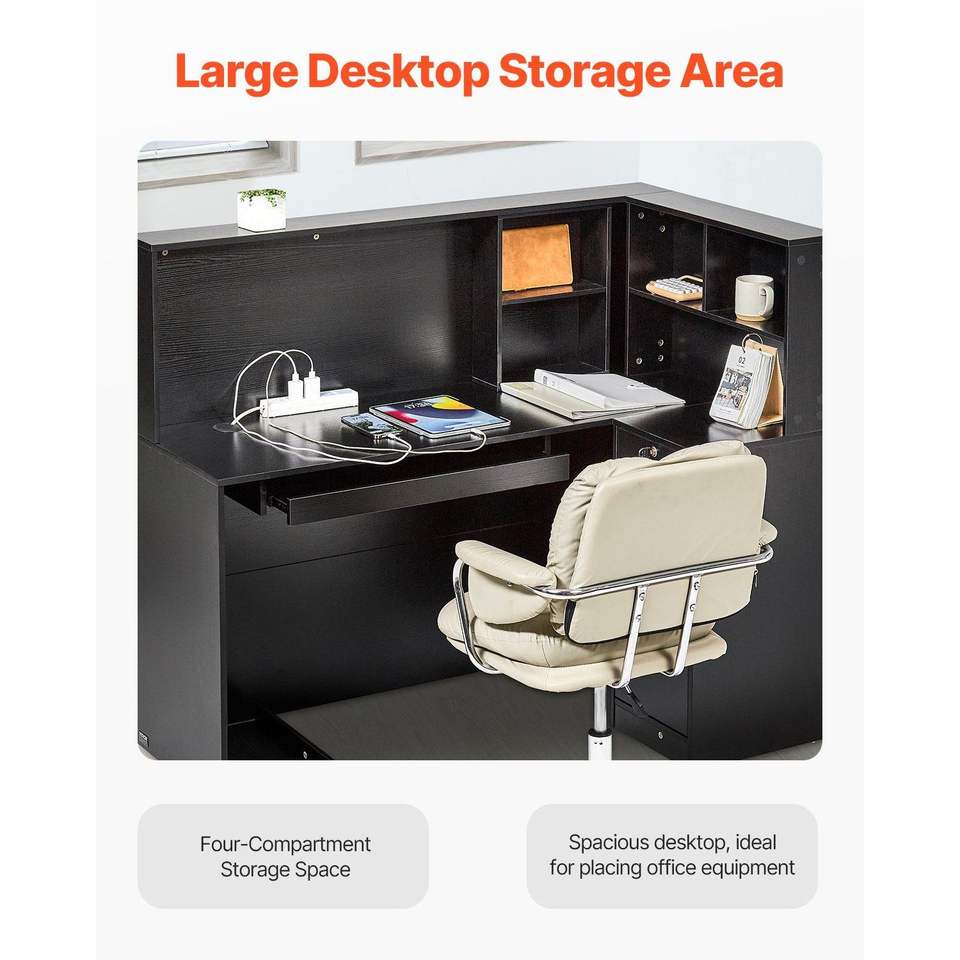 55Inch Black L-Shaped Reception Desk Office Front Counter Table Drawer Keyboard Tray Storage Cabinet Checkout Lobby Beauty Salon