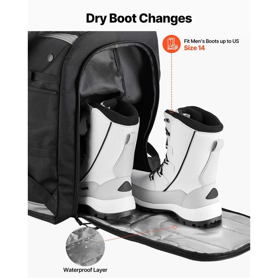 55L Waterproof Oxford Ski Boot Bag Black Travel Backpack for Snowboard Equipment