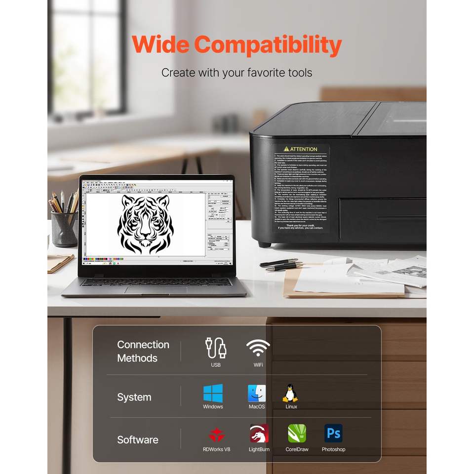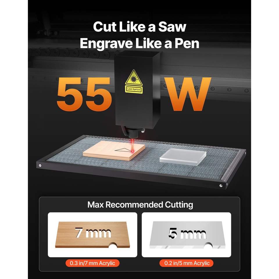 Macchina per Incisione e Taglio Laser CO2 da Tavolo 55W, 20 X 12 Pollici con Fotocamera 16MP, Pompa d'Acqua, Asse Rotante