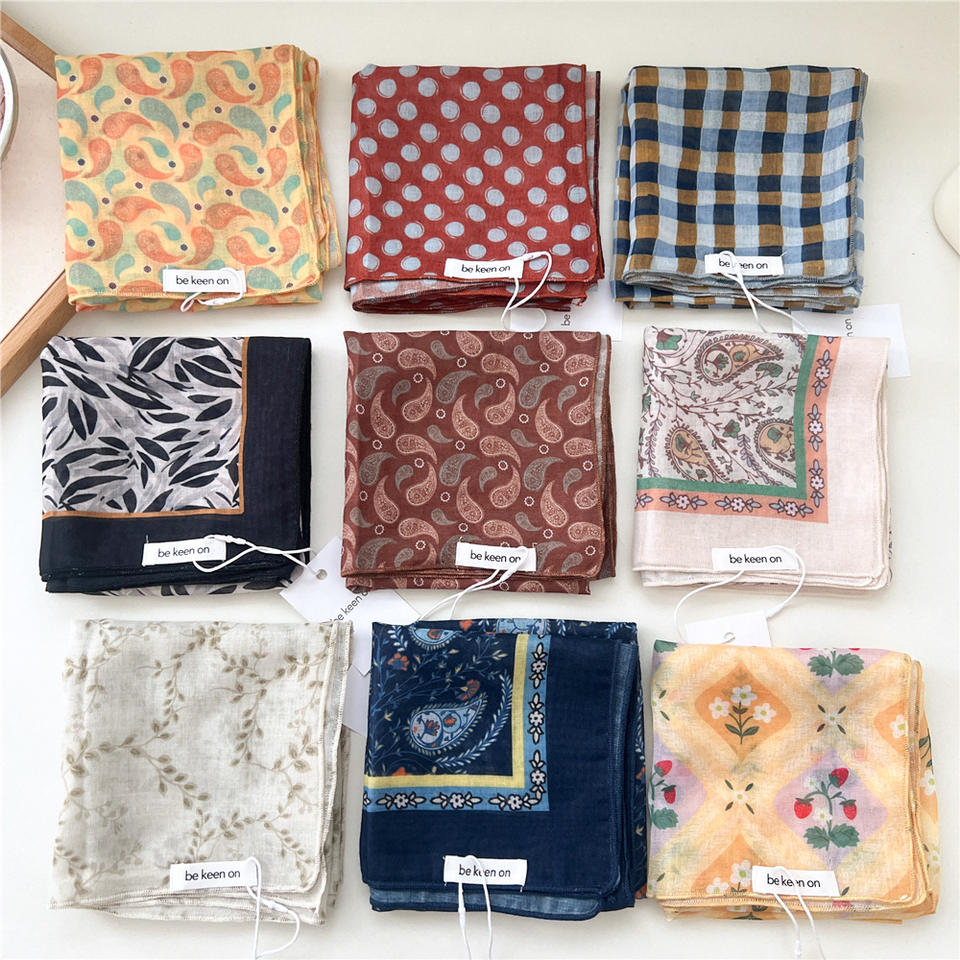 Sciarpa quadrata in stile giapponese da 55cm per donna primavera estate morbida e traspirante scialli tradizionali artistici