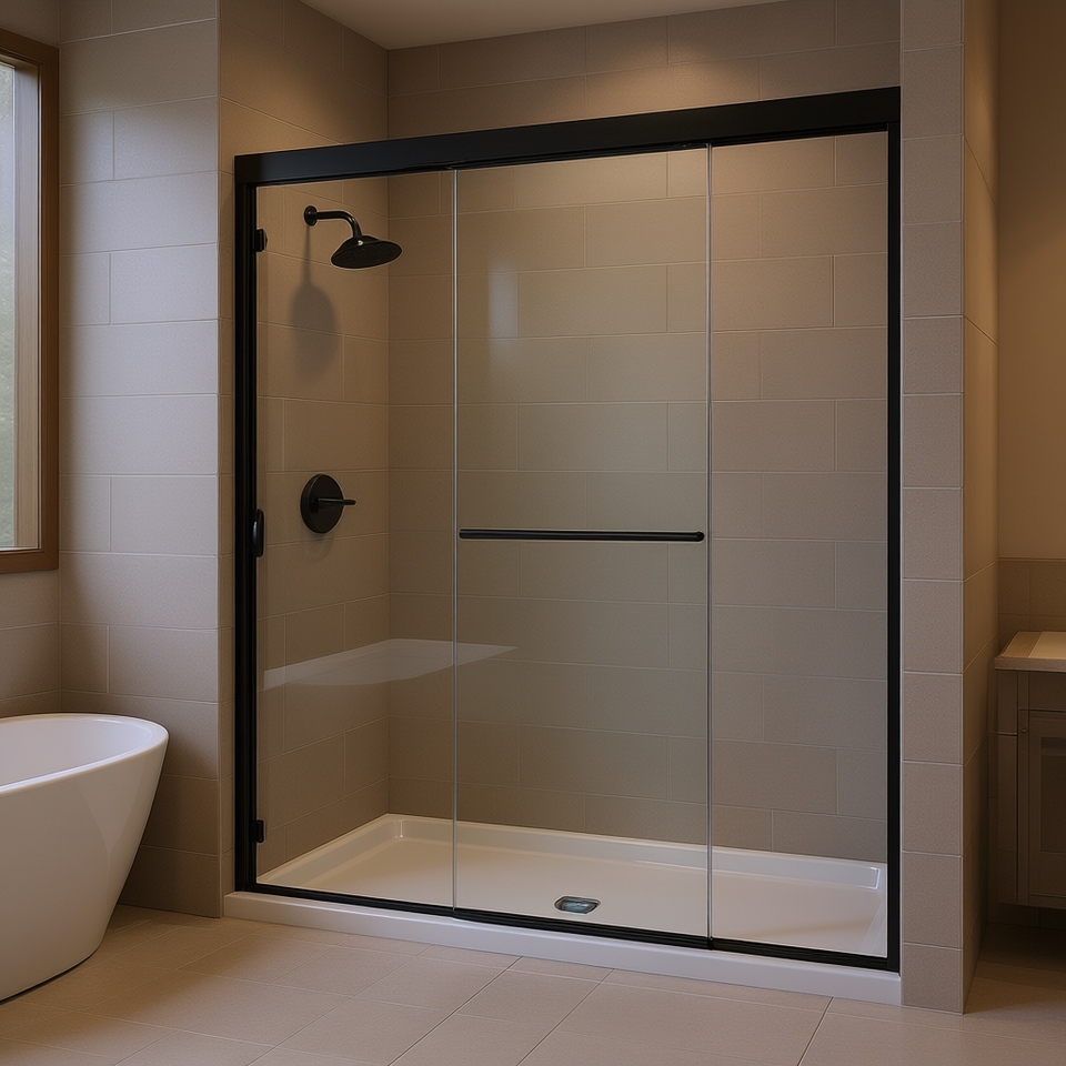 Porta Doccia Scorrevole Doppia Semi-Incassata 56-60 Pollici L X 72 Pollici Box Doccia Walk-In con Porta Scorrevole in Vetro Temperato Nero Opaco da 1/4 di Pollice