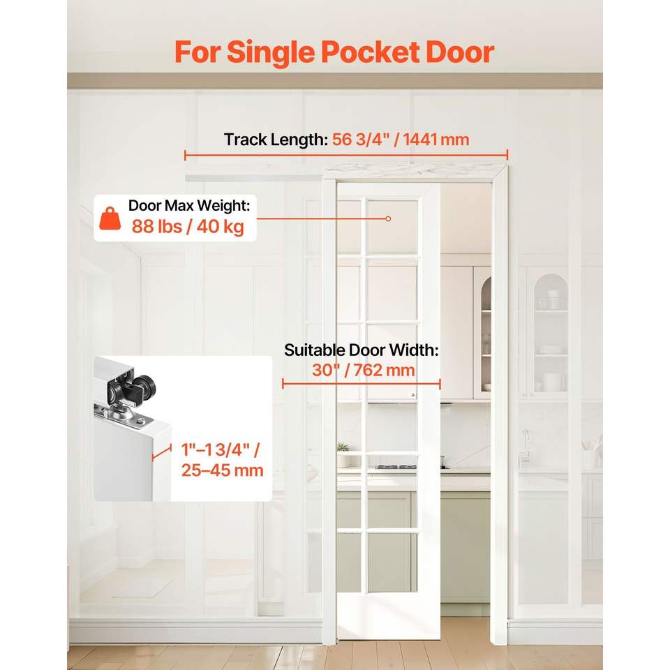 Kit Binario per Porta Scorrevole a Scomparsa da 144 cm con Meccanismo di Chiusura Ammortizzata per Scorrimento Fluido e Silenzioso